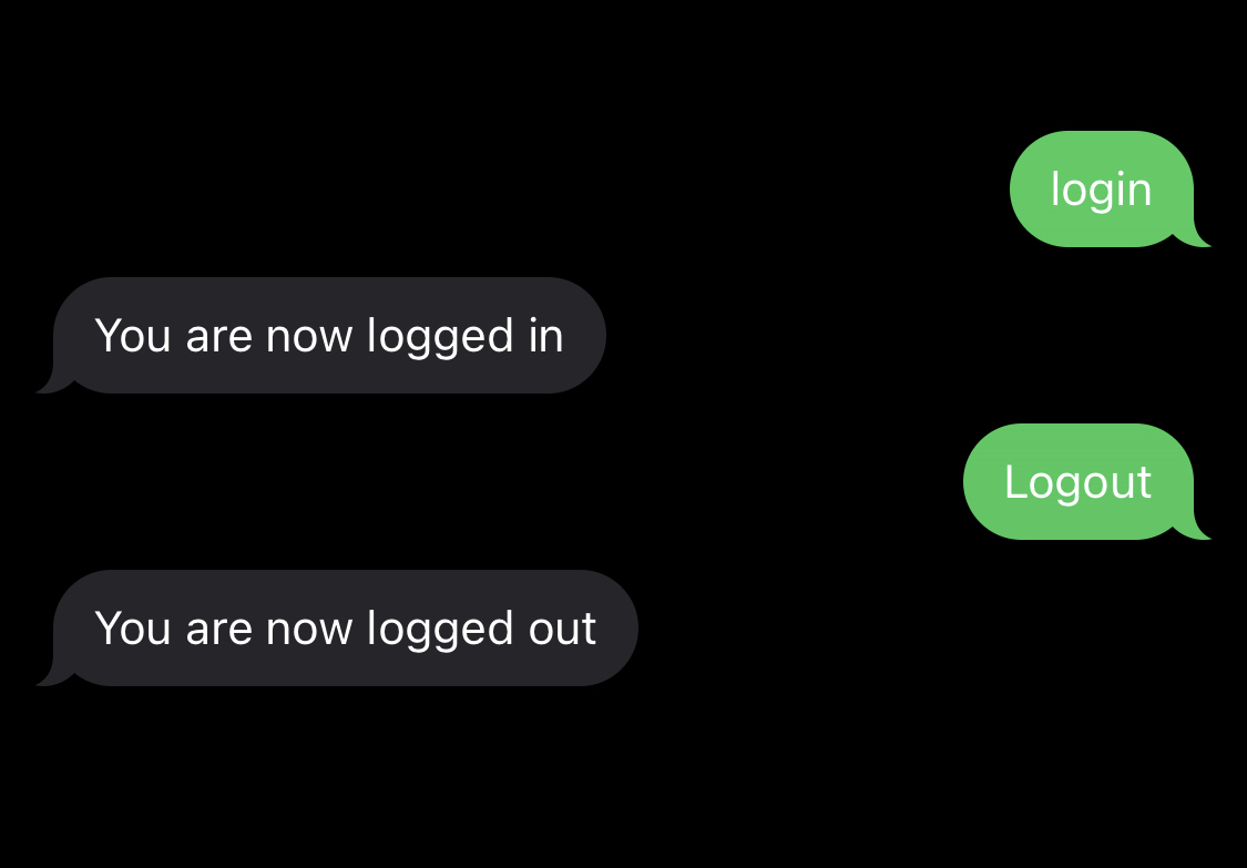 To do this you simply send a SMS to your virtual number with the text "login" and "logout" depending on your choice. It works with both Upper- or lowercase.